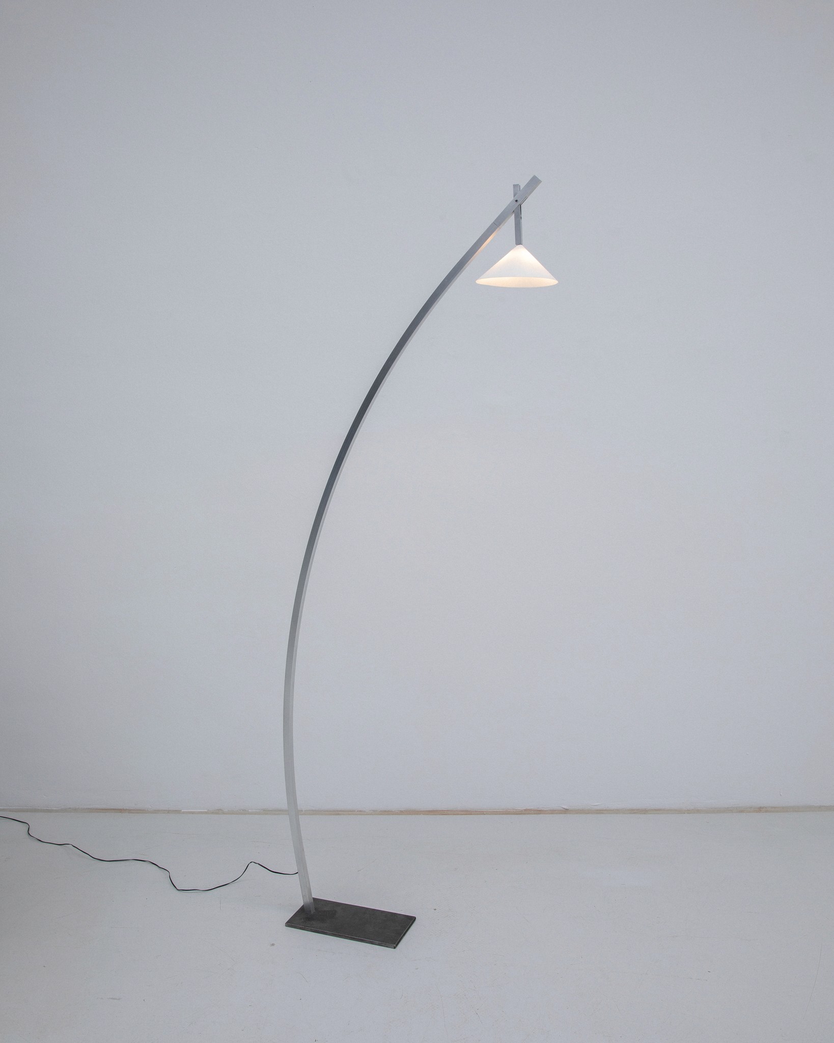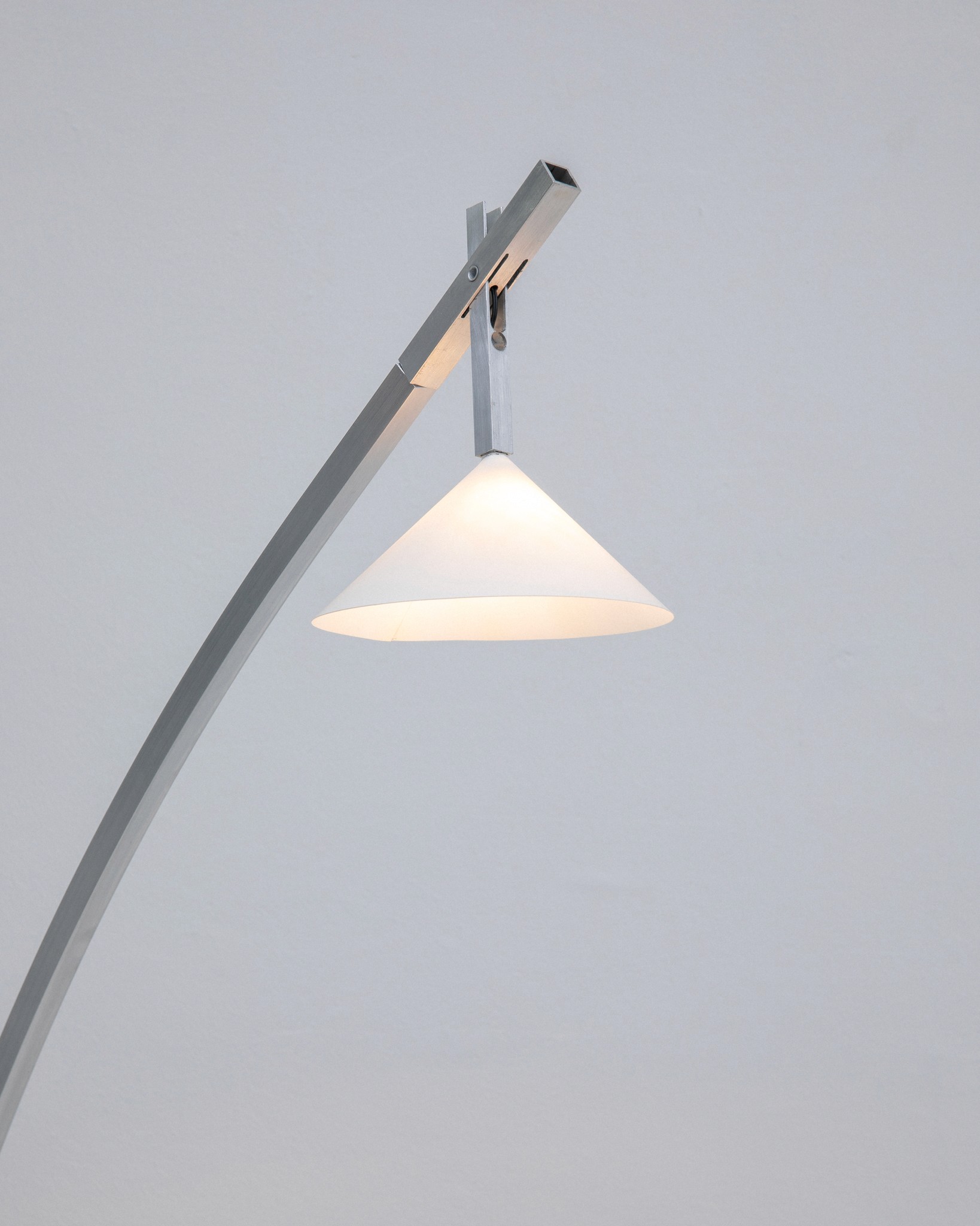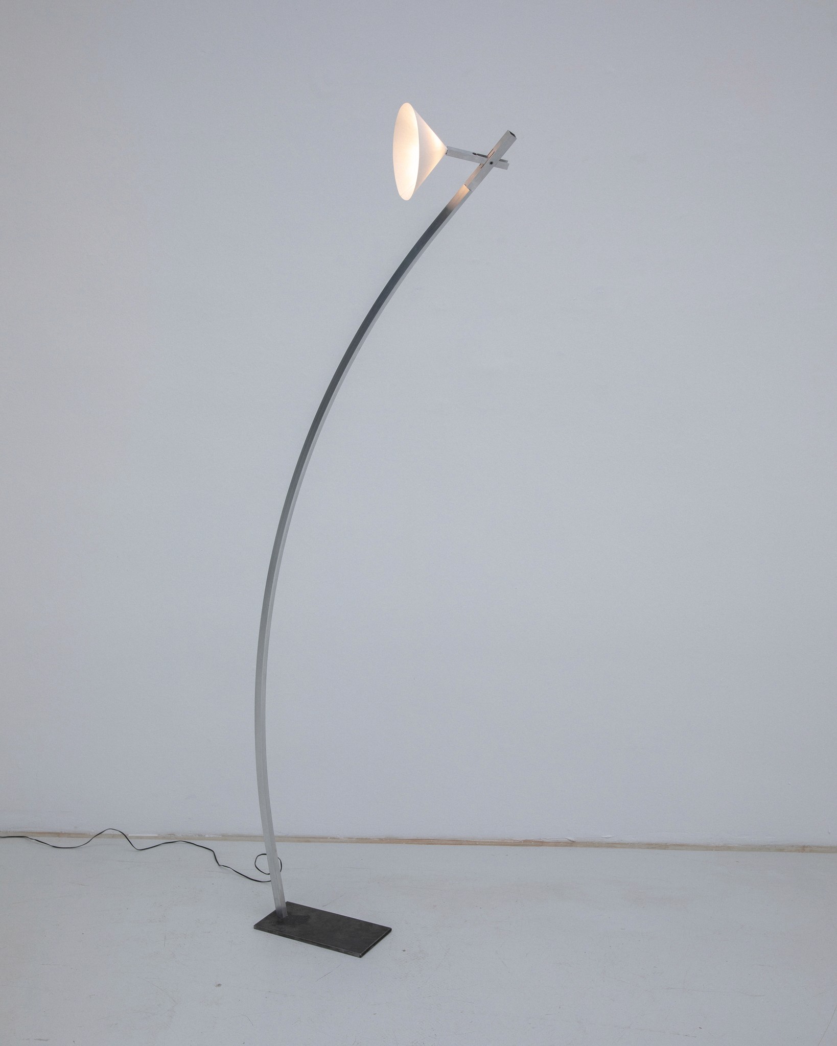 The CLIP Lamp is a Floor Lamp crafted from raw aluminium. The light source can be ajdusted by hand thanks to two rotational joint in both axis.