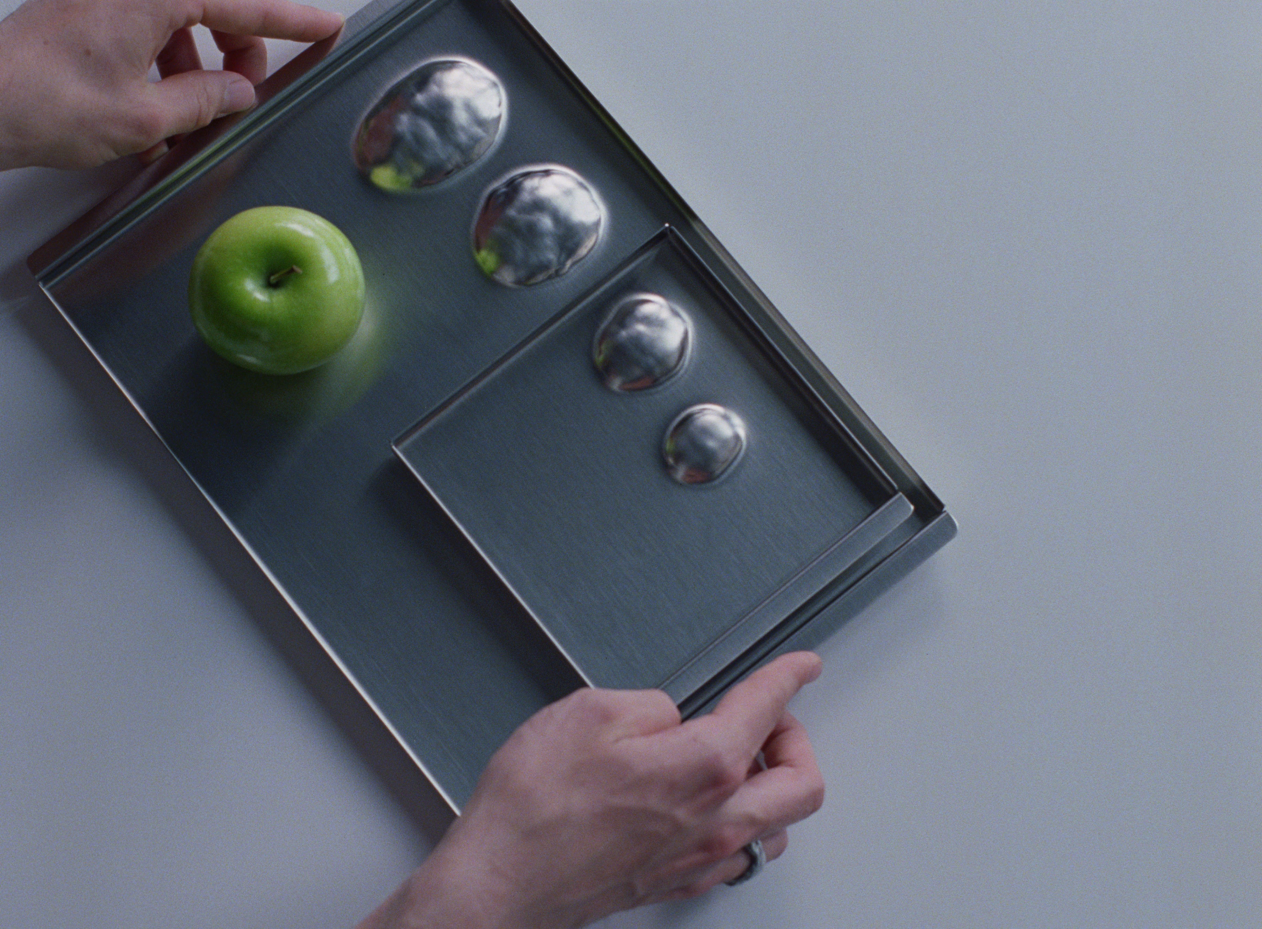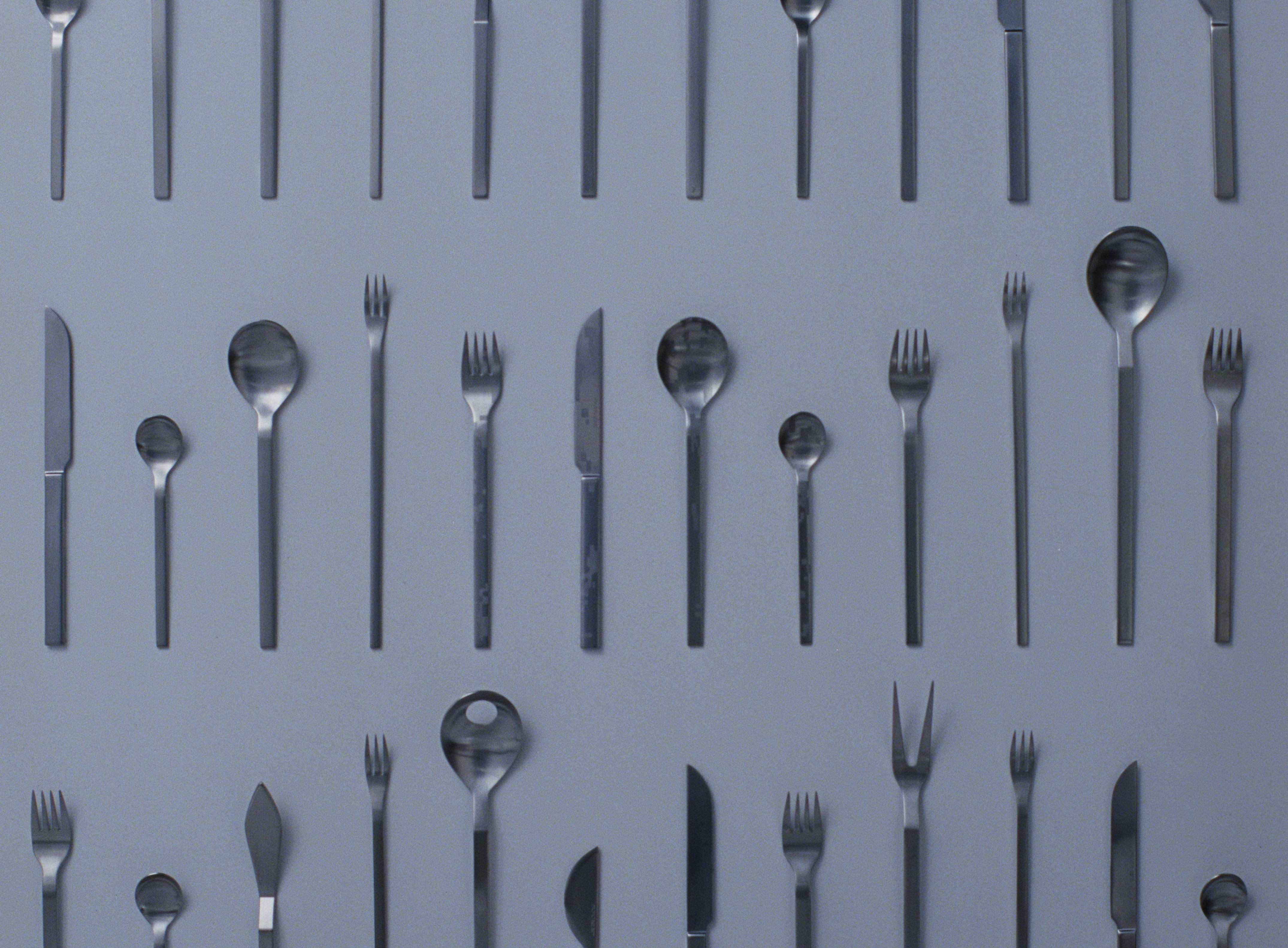 In a video work produced by Studio Draussen, Xaver Kuster presents new perspectives on Mono design classics, such as the Mono A cutlery set, designed in 1959, and the Mono tray. The project also explores the reuse of industrial waste — specifically punched sheet metal from cutlery production — transforming it into collectible design pieces.